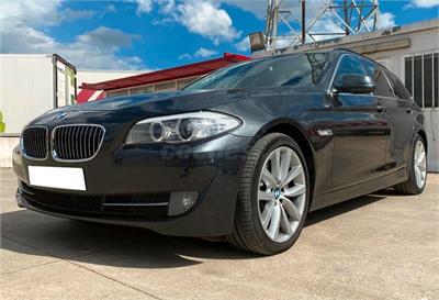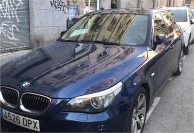BMW Serie 5 de segunda mano en Madrid. Vehículo nacional revisado en un estado de funcionamiento perfecto kilometraje garantizado por escrito libro de mantenimiento al día volante de cuero con mandos multifuncional cambio automático bluetooth faros automáticos sistema de navegación llantas de aleación.
