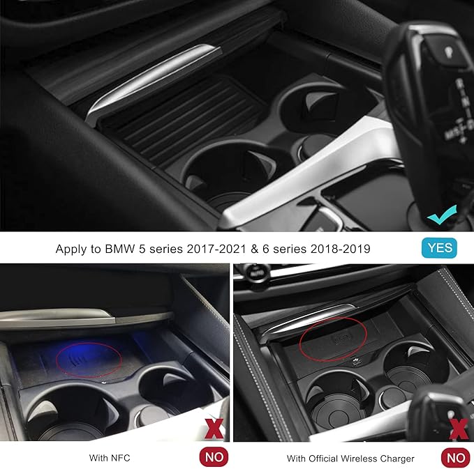 CarQiWireles wirele ss charging pad for BMW 5 series F07 F10 F11 F18 6 Series F06 F13 2012-2017 front center console tray replace Cig lighter back connector get power. Order now and upgrade with these aftermarket BMW 5 Series Parts and Accessories. Best Versatile Range of BMW 5 SERIES Accessories.